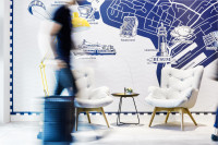 Das nautische Flaggenalphabet, kombiniert mit den individuellen Illustrationen, schmückt viele Wände in den Fluren des Hotels.