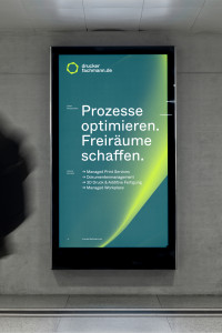 „Prozesse optimieren, Freiräume schaffen“ – das Werteversprechen steht im Mittelpunkt der gemeinsam entwickelten Brand Strategy. Prozessoptimierung ist auch das Leitmotiv im neu entwickelten Brand Design. Ein Logo, in dem Zahnräder fluide ineinandergreifen, ein strukturgebendes Gestaltungsraster, eine technisch anmutende Typografie und 3D-Renderings, die den Druck- und Digitalisierungsprozess visualisieren: Die Gestaltungselemente des Brand Design geben druckerfachmann.de die Freiheit, flexibel auf alle Anforderungen und Touchpoints zu reagieren.