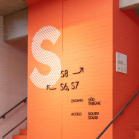 Signage von S bis XL: Jede Himmelsrichtung hat ihren eigenen Farbcode und vereinfacht das Auffinden des Sitzplatzes.