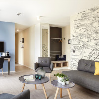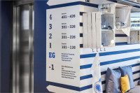 Das nautische Flaggenalphabet, kombiniert mit den individuellen Illustrationen, schmückt viele Wände in den Fluren des Hotels.