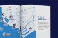 Kernthema ist die moderne Interpretation der traditionellen und regionalen Werte der Nordsee. In Zusammenarbeit mit den Architekt:innen entwickelten wir die Kommunikation im Raum und ein Leitsystem für das gesamte Haus. Herzstück der Kommunikation sind maritime Illustrationen, die sowohl plakativ an Wänden als auch individuell angefertigt als Rapport auf Tapeten und Werbeartikeln zum Einsatz kommen. Neben der Bildsprache wurde auch eine charakteristische Texttonalität auf Basis des Dithmarscher Platts entwickelt. Die Hotelbroschüren und eine responsive Website inklusive Buchungstool komplettieren die Außendarstellung.