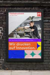 Um die Brand Strategy zu untermauern, entwickelte Bräutigam & Rotermund das neue Brand Design und den Claim „Wir leben Farbe“. Bunte Kreise und Rechtecke, die vom Druckraster und Farbkontrollstreifen hergeleitet wurden, bestimmen das abwechslungsreiche und lebendige Erscheinungsbild. Auch das „Smiling-M-Logo“ wurde aus diesen Bestandteilen gestaltet und steht als starke Bildmarke sinnbildlich für den persönlichen und sympathischen Kontakt, der den Unterschied zu anderen Groß- und Online-Druckereien ausmacht.
